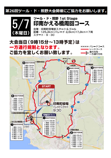 TOUR de 熊野「印南かえる橋周回コース」および通行規制図等について