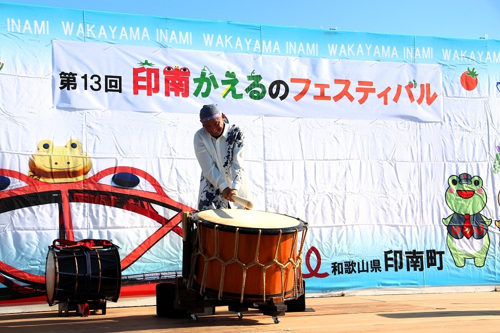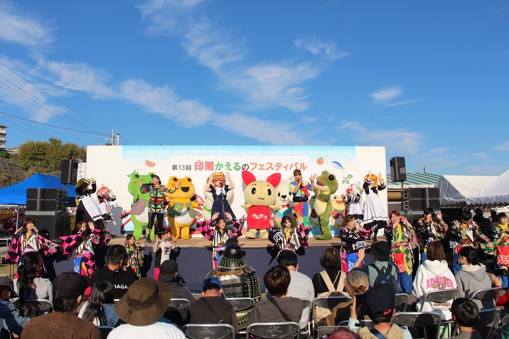 11月16日(日)に印南漁港で第13回印南かえるのフェスティバルが開催されました。今年も盛りだくさんな内容で、ステージでは和太鼓演舞やよさこいダンスショー、強力翔の手話ライブなどが披露され、会場はおおいに盛り上がりました。その他、たくさんの体験コーナーや模擬店などがあり、たくさんの来場者でにぎわいました。