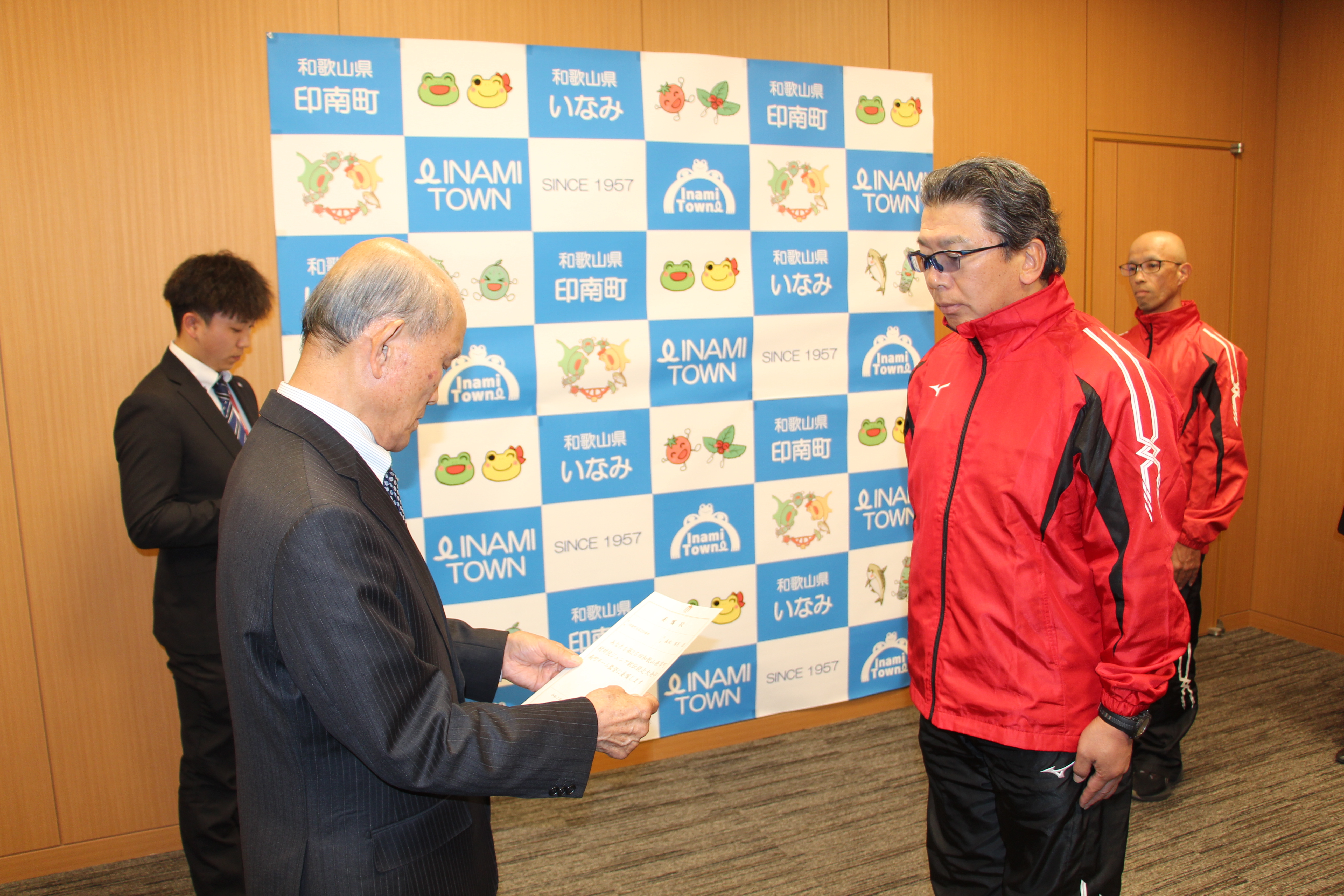 和歌山県市町村対応ジュニア駅伝印南町チーム団長等委嘱式に出席